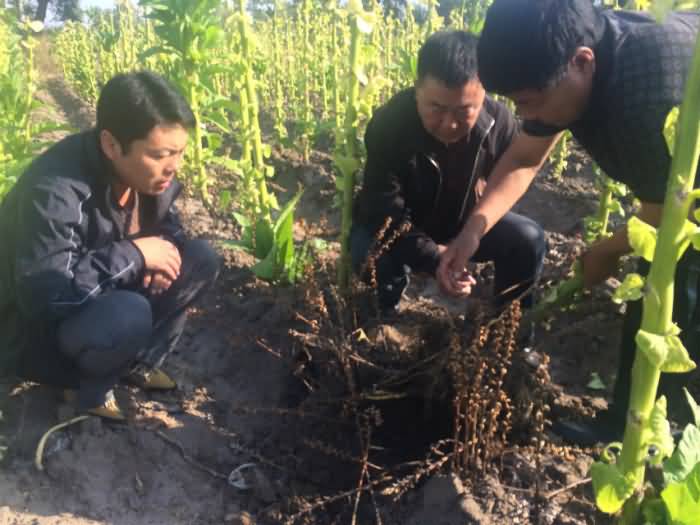 圖5:吉林省鎮(zhèn)賚縣煙草種植大戶(hù)在煙草列當(dāng)防治試驗(yàn)田說(shuō),今年的煙葉是最好的,畝產(chǎn)400斤不是問(wèn)題