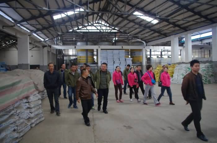 2014年10月31—11月1日,新疆偉農(nóng)科技發(fā)展有限公司馬董事長和孫總經(jīng)理,攜公司員工37人,專程來到成都華宏生態(tài)農(nóng)業(yè)科技有限公司參觀考察,成都華宏公司總經(jīng)理李智強、副總經(jīng)理陸勇、廣漢分公司總經(jīng)理姚虞和各部門負責(zé)人熱情地接待了遠方來的貴賓。在李總等的引領(lǐng)下,他們分別參觀了華宏公司大量元素水溶肥料生產(chǎn)線、氨基酸液肥、“施地佳”土壤調(diào)理劑生產(chǎn)線和微生物發(fā)酵車間。偉農(nóng)公司有員工風(fēng)趣地說:很榮幸來到“施地佳”土壤調(diào)理劑的娘家參觀考察。是的,這里就是“施地佳”土壤調(diào)理劑的誕生地,成都華宏生態(tài)農(nóng)業(yè)科技有限公司經(jīng)過近10年的研發(fā)、試驗和不斷改進,“施地佳”土壤調(diào)理劑產(chǎn)品已趨于成熟,它將在全國的土壤改良行業(yè)發(fā)揮它獨特的作用。