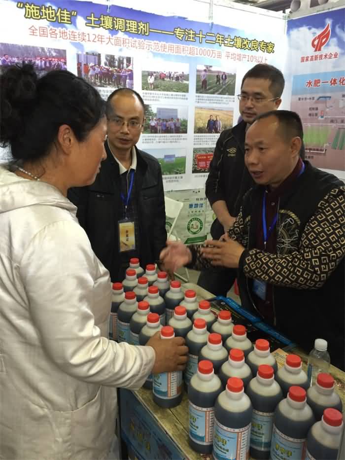 當參展人員來到展臺前,成都華宏的展示人員不僅講解土壤改良劑的功能及使用方法,還根據參展人員不同的問題和需求給出最佳解決方案和意見,真正做到“對癥下藥”。