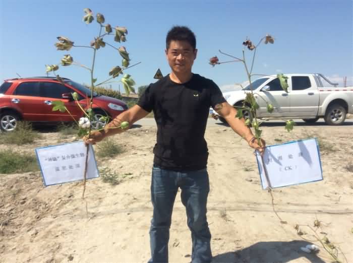 于2014年在博樂市進行的試驗效果也同樣令人稱贊。筆者在實驗報告中看到,該產(chǎn)品在博樂市的試驗田位于該地的達(dá)勒特鎮(zhèn),該地塊已連續(xù)種植棉花30年左右,土質(zhì)同樣為灌耕灰漠土,近些年來棉花枯黃病發(fā)病較嚴(yán)重,示范試驗面積為40畝。試驗過程中共設(shè)2個處理,在栽培管理條件基本一致的情況下,分別在棉花苗期、蕾期、花鈴期結(jié)合滴水,連續(xù)5次每畝每次滴入1公斤“神鋤”枯草芽孢桿菌復(fù)合微生物功能菌肥,與相鄰不滴該肥的棉地為對照處理。數(shù)據(jù)顯示,與未使用該產(chǎn)品的地塊相比,施用該產(chǎn)品地塊的棉花發(fā)病率降低了23%,每畝增產(chǎn)籽棉62.6公斤,防治病情和增產(chǎn)增收效果出色。