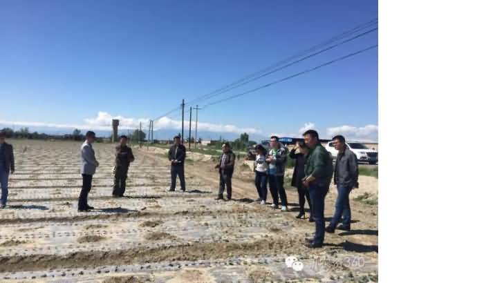 圖片說明2:89團領導親自過問種植戶情況,種植戶匯報了這兩年使用情況,效果很好。