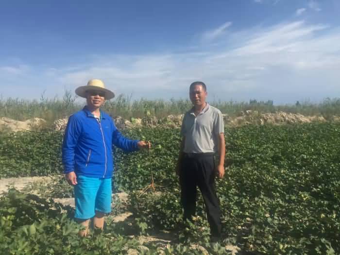 2016年在新疆生產(chǎn)建設(shè)兵團(tuán)第五師實(shí)施“神鋤”微生物功能菌劑防治棉花枯萎、黃萎病。小區(qū)實(shí)驗(yàn)和大田應(yīng)用同時(shí)進(jìn)行,公司總農(nóng)藝師劉軍與區(qū)域負(fù)責(zé)人小秦今天在實(shí)驗(yàn)田調(diào)查,到八十一團(tuán)六連與團(tuán)生產(chǎn)科姜濤科長(zhǎng)、連隊(duì)技術(shù)員李文在示范地田間調(diào)查和測(cè)試產(chǎn)量,發(fā)病率與對(duì)照田降低70%,平均培產(chǎn)超10%。八十三團(tuán)十二連張連長(zhǎng)介紹,往年病害發(fā)生嚴(yán)重,今年應(yīng)用神鋤生物菌防治,得到很好的抑制,在整個(gè)示范田沒(méi)有發(fā)生病害,畝產(chǎn)達(dá)350公斤以上用戶今年豐收在望!