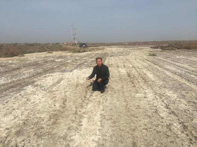 新疆地處歐亞大陸腹地,常年干旱少雨,蒸發(fā)強烈,典型的內(nèi)陸干旱氣候使得農(nóng)業(yè)生產(chǎn)全部依賴于灌溉,土地鹽堿化十分嚴重。在新疆阿克蘇市溫宿縣古勒阿瓦提鄉(xiāng),當(dāng)?shù)赜?005年開始開墾鹽堿荒地27000畝以建設(shè)農(nóng)場,然而因為惡劣環(huán)境和技術(shù)實力的限制,歷經(jīng)十年攻堅,直到2015年依然遙遙無期。這其中,擁有1000畝種植大戶李輝就深受鹽堿荒地的困擾,土地產(chǎn)量始終無法提升。2015年3月,受李輝之邀,在治理土地鹽堿化方面擁有成熟經(jīng)驗的成都華宏生物科技有限公司,由總經(jīng)理李智強、總農(nóng)藝師劉軍、高級農(nóng)藝師楊福勛組成技術(shù)團隊,來到李輝所經(jīng)營的示范地現(xiàn)場考察,并商討實施方案。