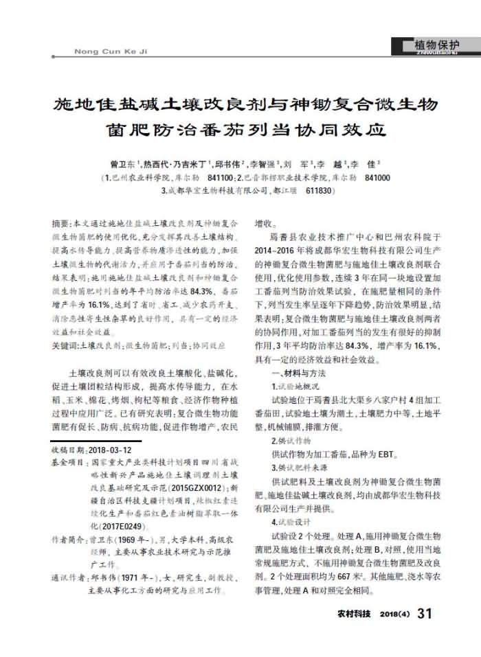 施地佳鹽堿土壤改良劑與神鋤復(fù)合微生物菌肥防治番茄列當(dāng)協(xié)同效應(yīng)