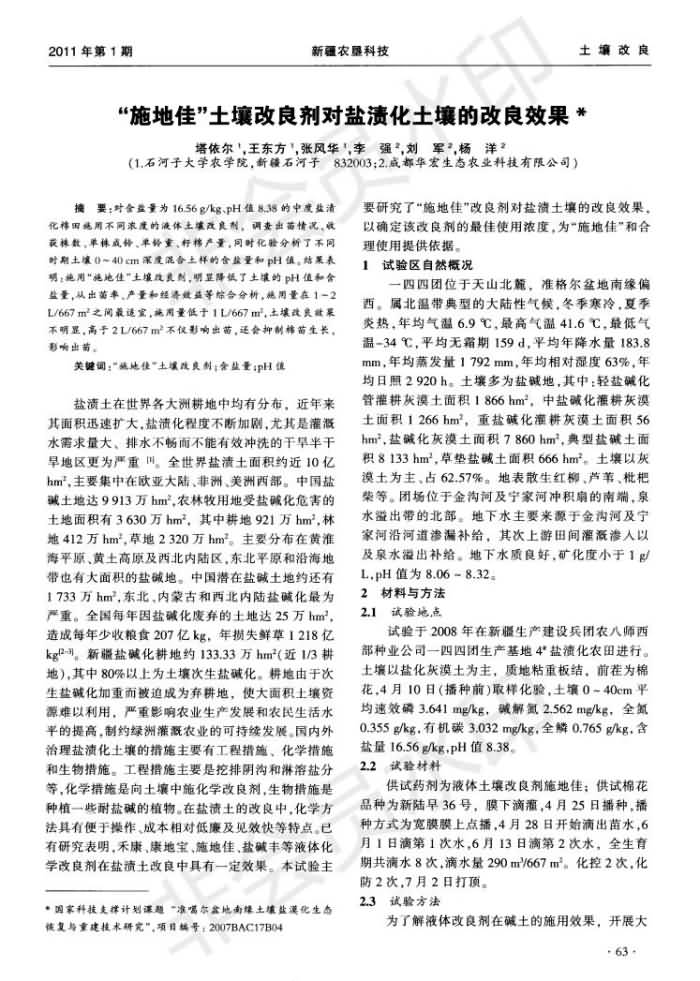 “施地佳”土壤改良劑對鹽漬化土壤的改良效果