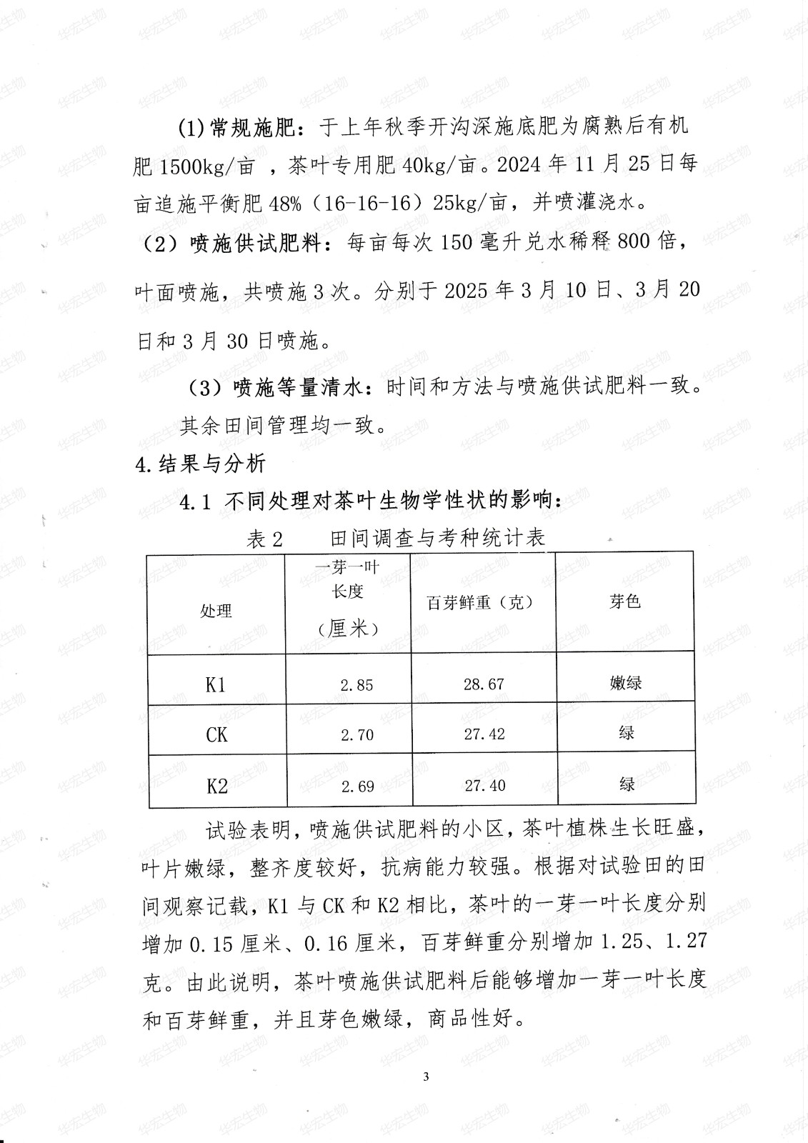 成都華宏生物科技有限公司生產(chǎn)的含氨基酸水溶肥料在茶葉上的肥效試驗(yàn)報(bào)告