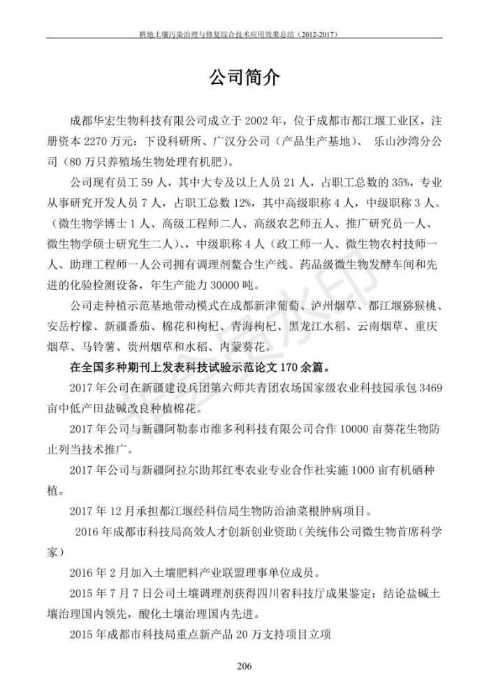 重金屬污染治理試驗(yàn)示范匯集2018.1.21成都華宏生物科技有限公司(合成本)(二十六)