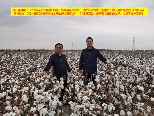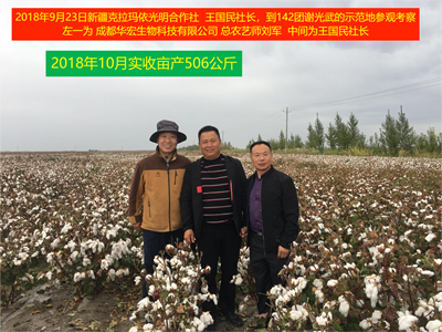 新疆阿克蘇地區(qū)溫宿縣古勒阿瓦提鄉(xiāng)600畝采用華宏方案當(dāng)年實(shí)現(xiàn)280公斤,第二年400公斤,第三年達(dá)到560公斤