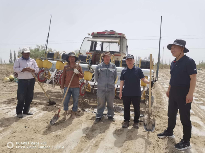 2020年6月17日新疆農(nóng)墾科學(xué)院生物研究所參觀我公司130團(tuán)光明合作社10000畝地產(chǎn)田改良示范田