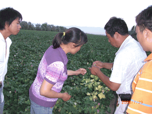 圖1:公司技術(shù)員到試驗(yàn)地里指導(dǎo)