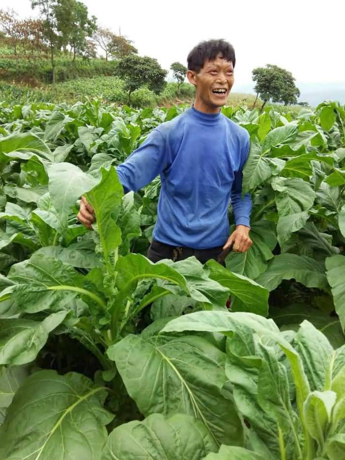 圖5:貴州道真縣河口鎮(zhèn)張倫飛看著自己今年50畝煙葉地?zé)熑~長(zhǎng)得這么好,笑得合不攏嘴了