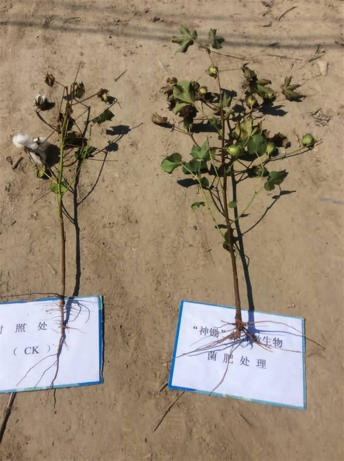 于2014年在博樂市進行的試驗效果也同樣令人稱贊。筆者在實驗報告中看到,該產(chǎn)品在博樂市的試驗田位于該地的達(dá)勒特鎮(zhèn),該地塊已連續(xù)種植棉花30年左右,土質(zhì)同樣為灌耕灰漠土,近些年來棉花枯黃病發(fā)病較嚴(yán)重,示范試驗面積為40畝。試驗過程中共設(shè)2個處理,在栽培管理條件基本一致的情況下,分別在棉花苗期、蕾期、花鈴期結(jié)合滴水,連續(xù)5次每畝每次滴入1公斤“神鋤”枯草芽孢桿菌復(fù)合微生物功能菌肥,與相鄰不滴該肥的棉地為對照處理。數(shù)據(jù)顯示,與未使用該產(chǎn)品的地塊相比,施用該產(chǎn)品地塊的棉花發(fā)病率降低了23%,每畝增產(chǎn)籽棉62.6公斤,防治病情和增產(chǎn)增收效果出色。