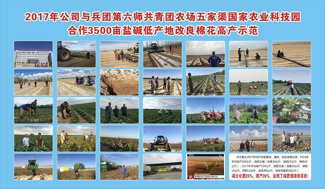 據(jù)介紹,五家渠國(guó)家農(nóng)業(yè)科技園創(chuàng)立于2012年4月,是由國(guó)家科技部批準(zhǔn)建設(shè)的現(xiàn)代化農(nóng)業(yè)示范園區(qū)。園區(qū)核心區(qū)位于新疆生產(chǎn)建設(shè)兵團(tuán)第六師共青團(tuán)農(nóng)場(chǎng),由現(xiàn)代農(nóng)業(yè)節(jié)水技術(shù)示范園、設(shè)施農(nóng)業(yè)示范園、現(xiàn)代畜牧產(chǎn)業(yè)園、特色林果產(chǎn)業(yè)園、農(nóng)產(chǎn)品加工產(chǎn)業(yè)園及信息技術(shù)中心、科技研發(fā)中心、管理服務(wù)中心等組成,占地面積達(dá)7萬畝地。其中3500畝的棉花種植區(qū),一直以來是兵團(tuán)和農(nóng)場(chǎng)重點(diǎn)攻關(guān)增產(chǎn)的項(xiàng)目,卻受制于當(dāng)?shù)佧}堿化的惡劣環(huán)境,始終處于低產(chǎn)歉收的狀態(tài)。