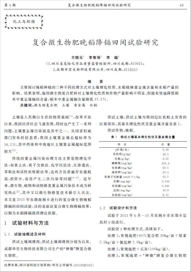 復(fù)合微生物肥晚稻降鎘田間試驗研究