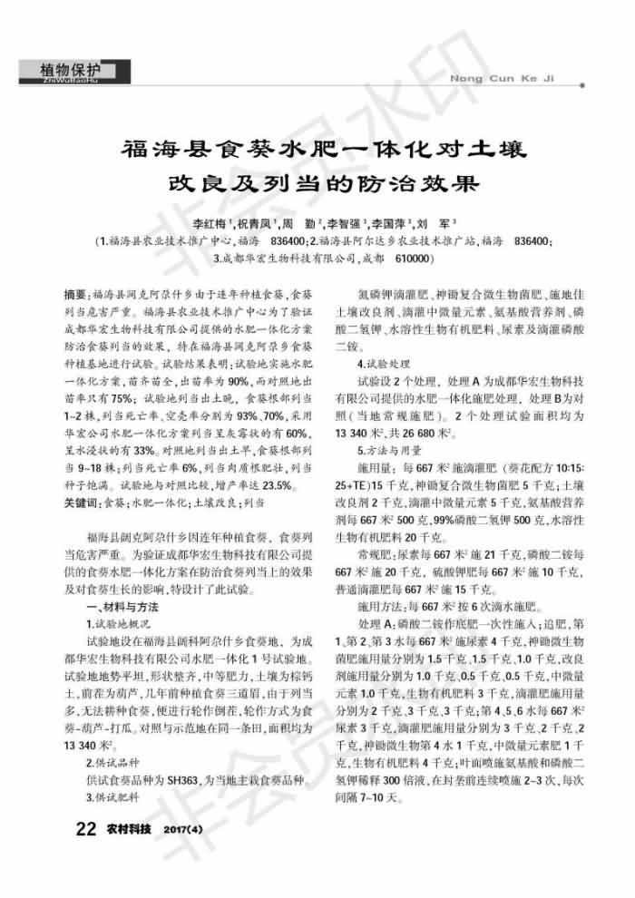 福??h食葵水肥一體化對(duì)土壤改良及列當(dāng)?shù)姆乐涡Ч?/h1>
