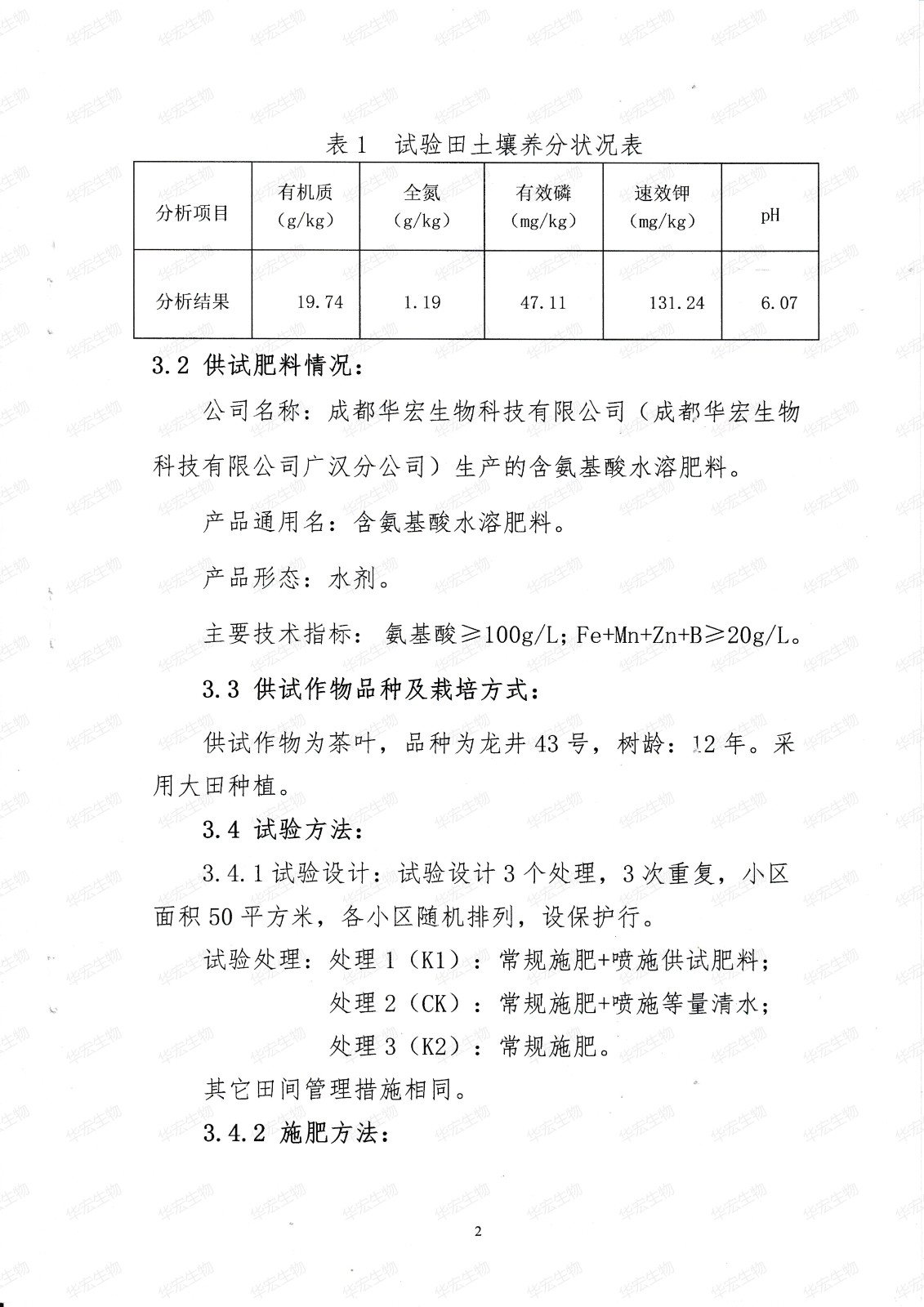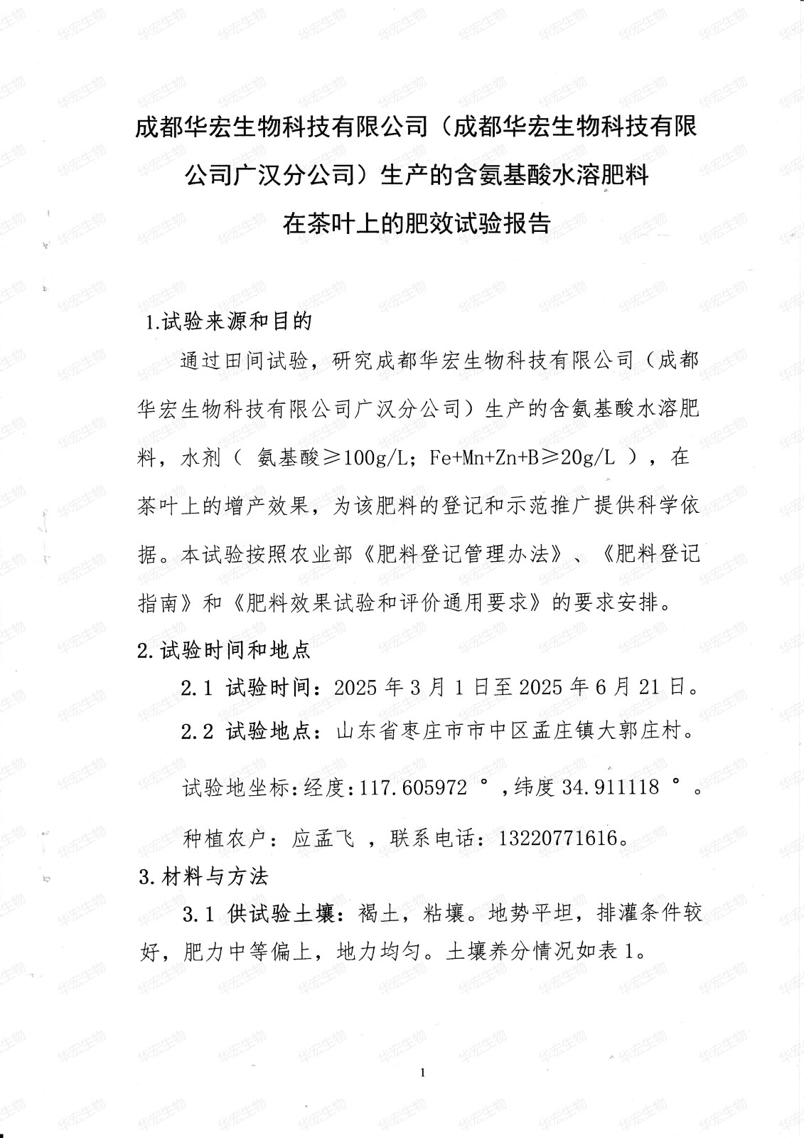 成都華宏生物科技有限公司生產(chǎn)的含氨基酸水溶肥料在茶葉上的肥效試驗(yàn)報(bào)告