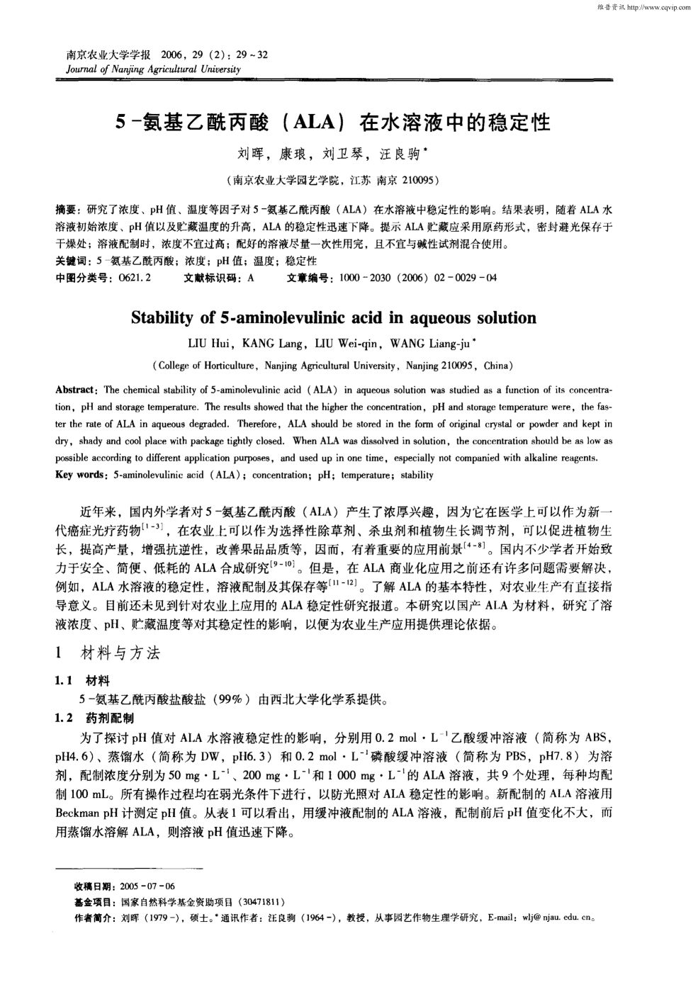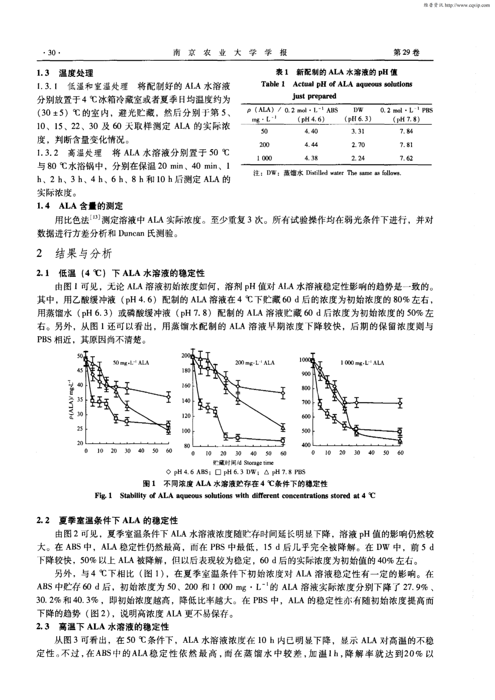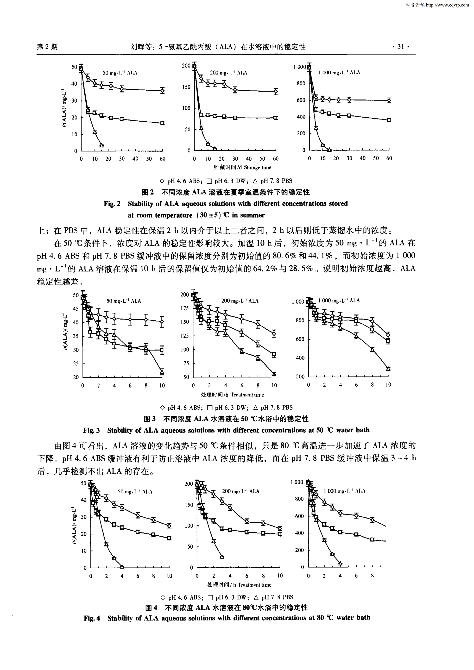 5-氨基乙酰丙酸(ALA)在水溶液中的穩(wěn)定性