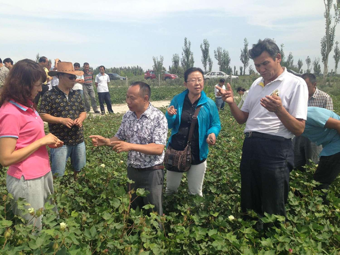 2020年6月17日新疆農(nóng)墾科學(xué)院生物研究所參觀我公司130團(tuán)光明合作社10000畝地產(chǎn)田改良示范田
